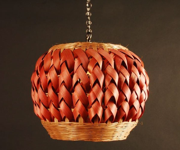 Eco-dyed hanging lamp with knock-down weave design, blending style and sustainability in a lightweight structure.