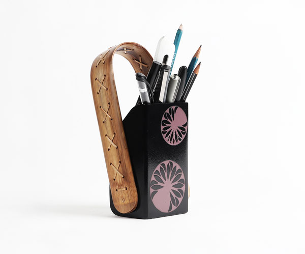 Minimal bamboo lamp featuring a pen holder base—celebrates raw simplicity with functional elegance.